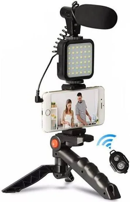 لو بتدور على طريقة سهلة واحترافية لتصوير الفيديوهات بالموبايل، كيت AY-49 Video Making هو الحل المثالي لصناع المحتوى والمبتدئين. الكيت بيجمع أهم أدوات التصوير في جهاز واحد علشان يقدم لك إضاءة قوية وصوت واضح وثبات أثناء التصوير.