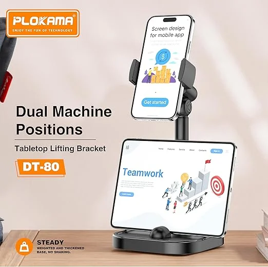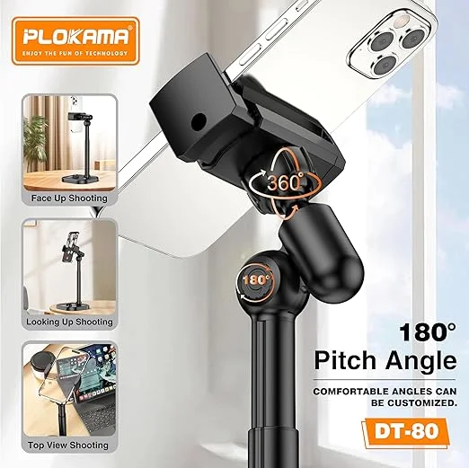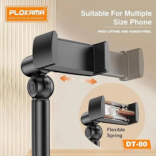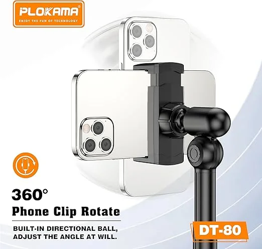يعد موديل DT-80 من Plokama الحل الهندسي الأمثل لتثبيت الهواتف والأجهزة اللوحية، حيث يجمع بين قاعدة الوزن الثقيلة وحرية الحركة الكاملة لتوفير زاوية رؤية مثالية أثناء العمل أو الدراسة أو البث المباشر.