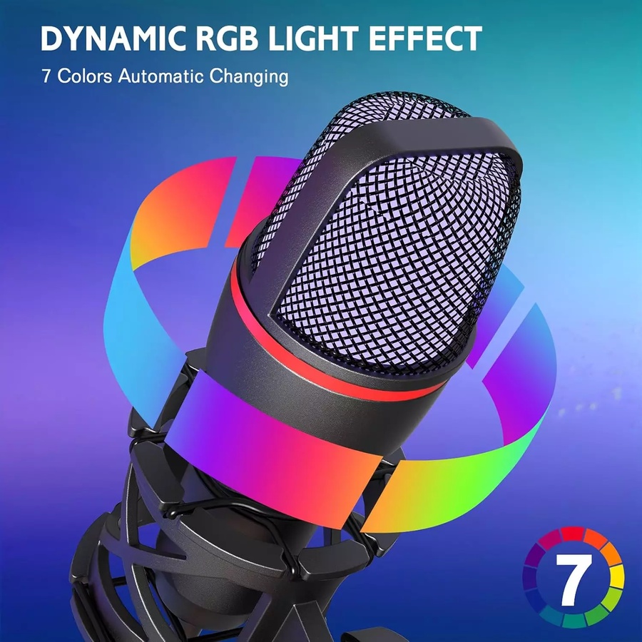 مصمم خصيصًا للاعبين والبث المصغّر، حيث تضيف إضاءة RGB المريحة تجربة لعب غامرة. أوضاع الإضاءة السبعة المتغيرة تلقائيًا تجعل الميكروفون أنيقًا وعصريًا وتمنح إعدادات الألعاب مظهرًا جذابًا.
