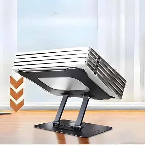 حامل كمبيوتر محمول L008 قابل للطي من الفولاذ الكربوني - قاعدة مانعة للانزلاق 360 درجة - مريح بزاوية وارتفاع قابل للتعديل مقاس 11 إلى 15 بوصة