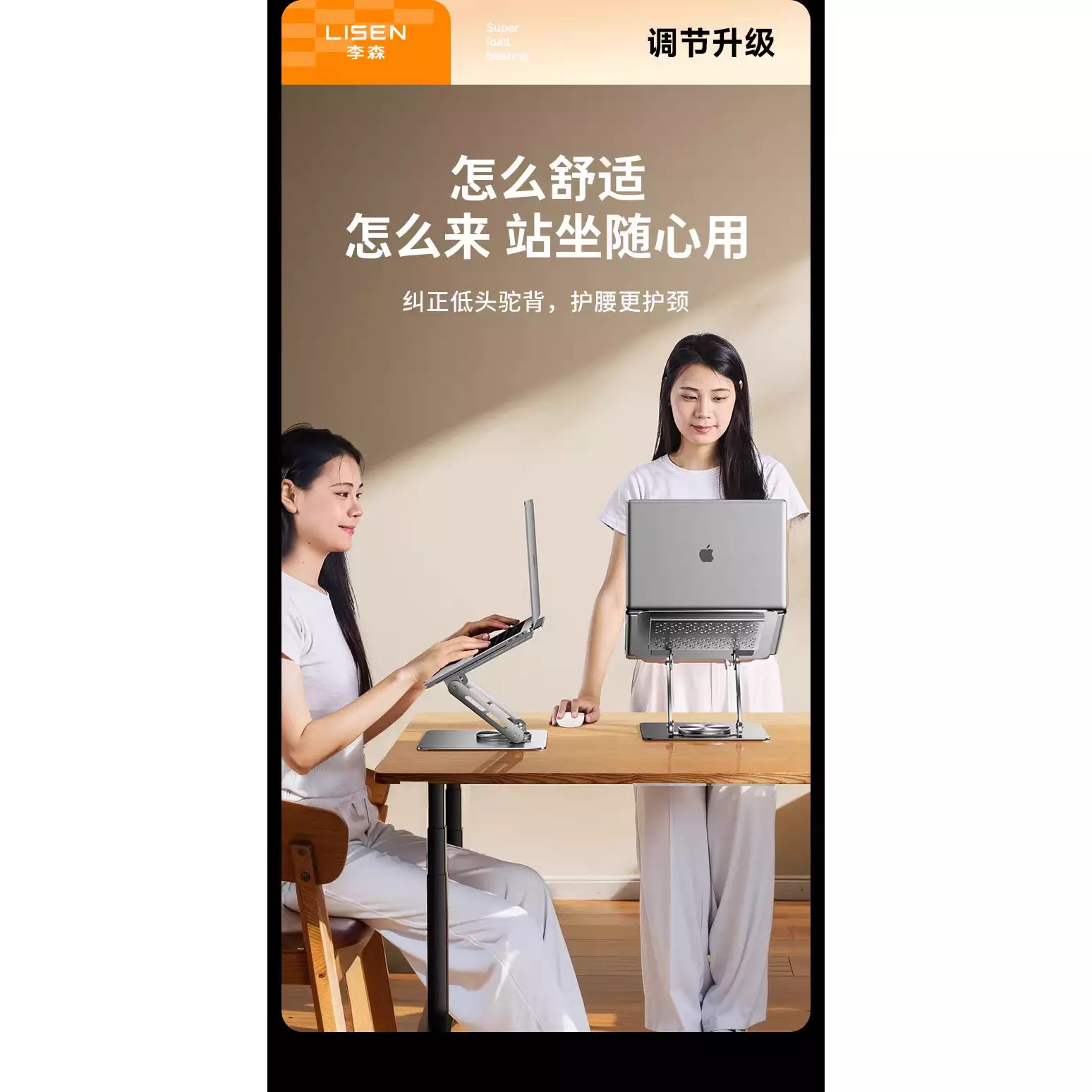LISEN J-103 Laptop Stand Rotatable 360° Foldable – Height Adjustable For Macbook / Laptop – 11 : 17 ” | Silver2000 gram 2kg