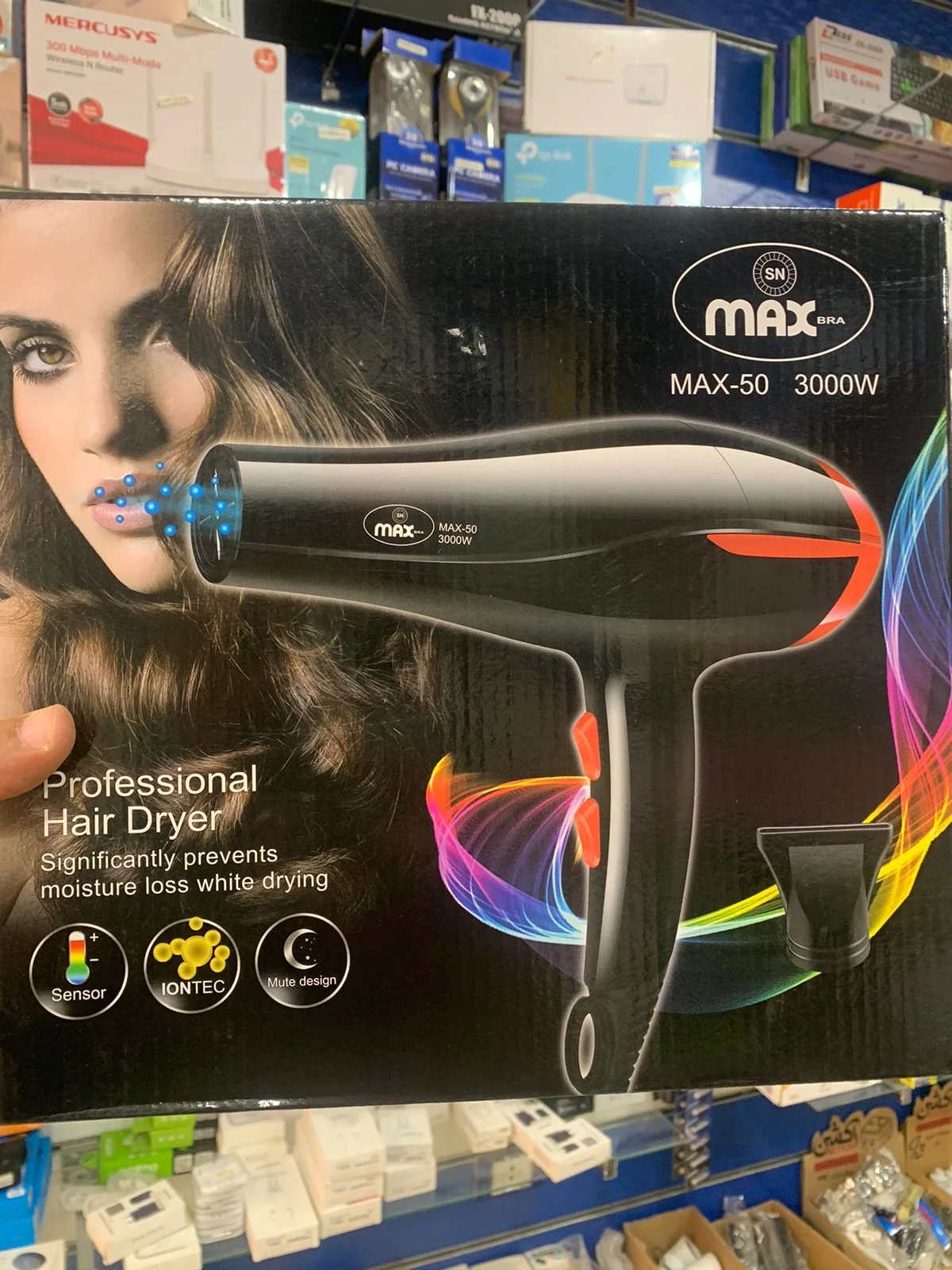 💇 مجفف الشعر الاحترافي MAX BRA – موديل MAX-50 بقوة 3000 وات