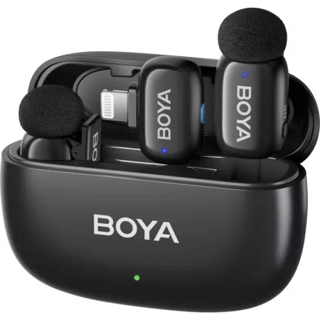 Designed for content creators on the go, the BOYA Mini 15 wireless microphone system provides exceptional portability and sound quality. It includes two ultra-light transmitters, a plug-in receiver with a Lightning connector, and a charging case. Ideal for TikToks, Instagram Lives, and YouTube vlogs, this system allows you to easily capture clear audio from up to 328 feet with two subjects.