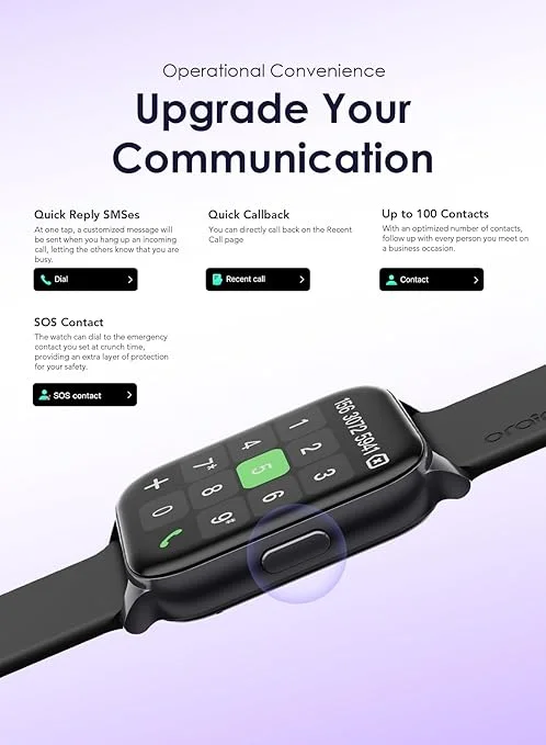 تقدم ساعة Oraimo 4 بلس تجربة استخدام مريحة بفضل شاشة اللمس الكبيرة، وتضمن لك عمر بطارية طويل، مما يجعلها مثالية للاستخدام اليومي سواء في العمل أو أثناء ممارسة الأنشطة الرياضية.