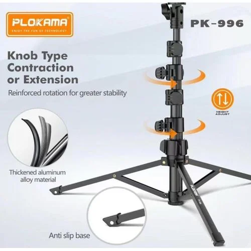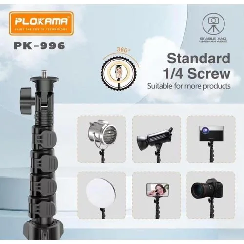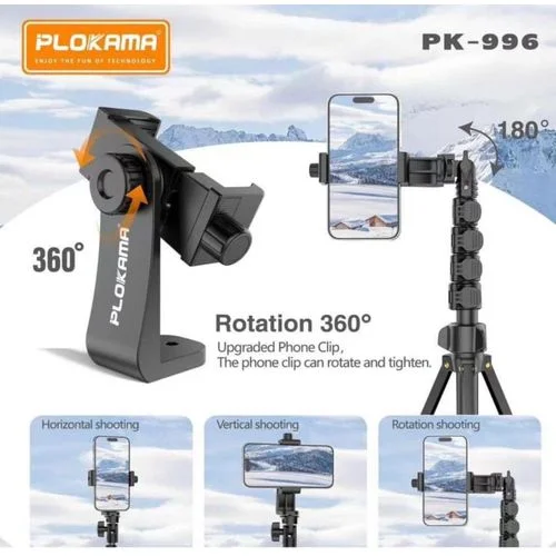 يُعد Plokama PK-996 الحل التقني المتكامل للمصورين وصناع المحتوى، حيث يجمع بين التصميم المتين والقابلية العالية للتعديل ليناسب التصوير بالموبايل أو الكاميرات في مختلف الظروف.