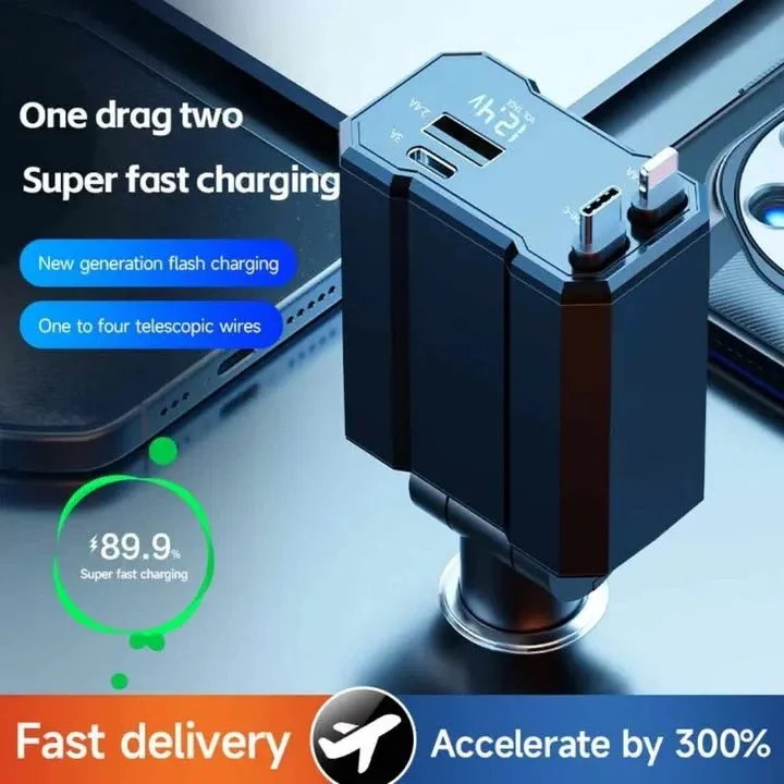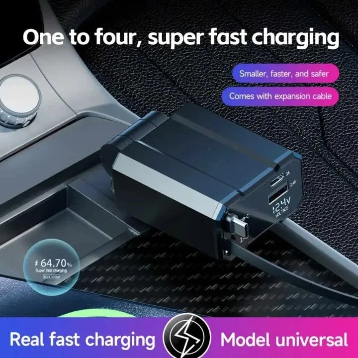 ✔️ شحن أجهزة متعددة في نفس الوقت (USB + Type-C + كابلات مدمجة).
