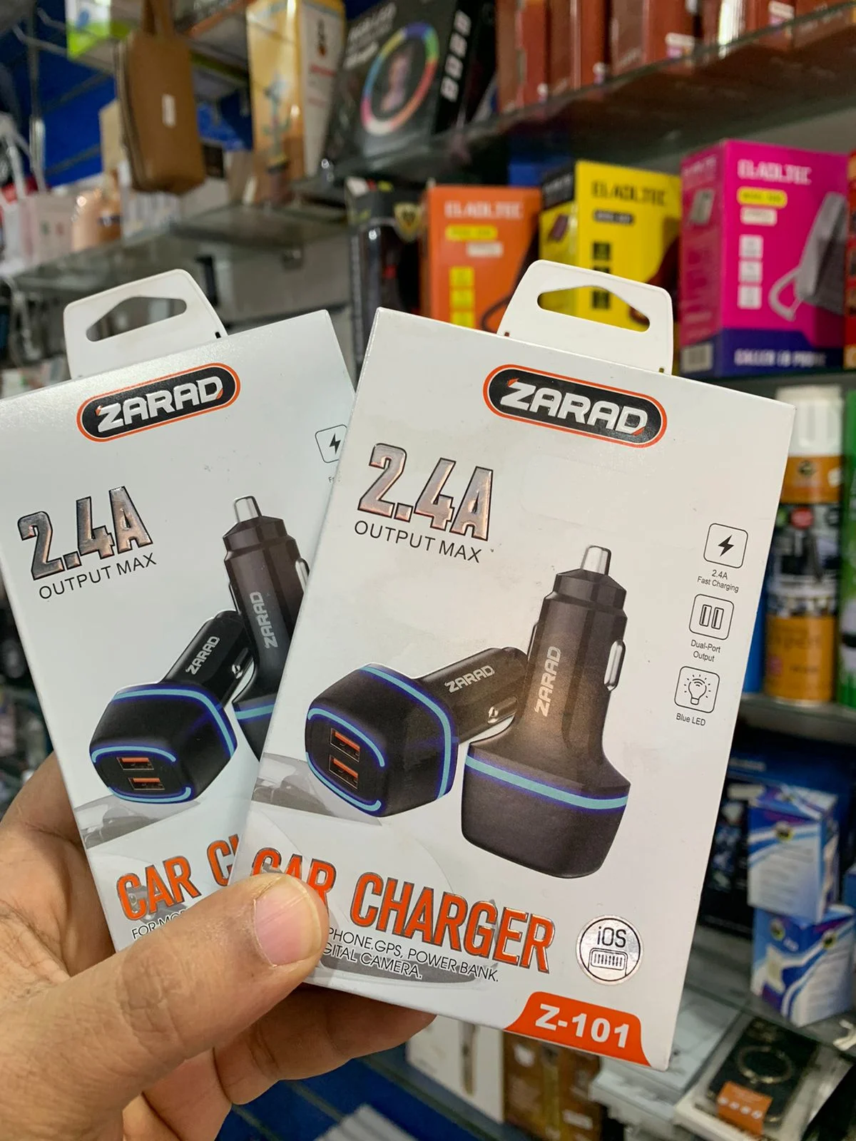 شاحن للعربية ZARAD سريع أمن لموبايلك 2.4 أمبير وبه اضاءة ليد زرقاء جميلة جدا ومخرجين USB ✨✨