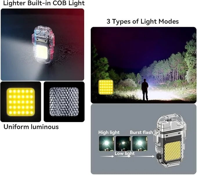 ولاعة كهربائية قابلة لإعادة الشحن مع مصباح LED مدمج هي أداة متعددة الاستخدامات مصممة للراحة والفعالية في جميع مغامراتك الخارجية. مثالية للتخييم، والطوارئ، والاستخدام اليومي، توفر لك هذه الأداة كل ما تحتاجه في جهاز واحد.